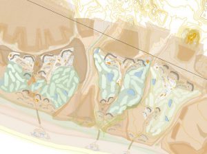 The project aims the complete integration of the unique environment with a hotel program of high density. It is why the project protects the values of the territory as a touristic reference, working on the basis of four areas understood as “islands”: the economical touristic island for a quiet and relaxing tourism, the island of golf-resort made of bungalows and hotels which won’t be higher than the vegetation around, the island of the seashore with higher density and at that point the project submerges and then it rises up with small towers which culminate with a peak into the Atlantic. Finally, the island made of luxury villas for an exclusive tourism.